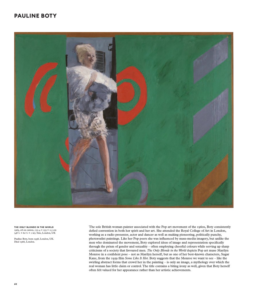 Other artists featured include: Hilma af Klint, Eileen Agar, Sofonisba Anguissola, Cecily Brown, Leonora Carrington, Mary Cassatt, Elaine de Kooning, Marlene Dumas, Nicole Eisenman, Jadé Fadojutimi, Helen Frankenthaler, Artemisia Gentileschi, Maggi Hambling, Carmen Herrera, Gwen John, Frida Kahlo, Tamara de Lempicka, Agnes Martin, Joan Mitchell, Alice Neel, Plautilla Nelli, Georgia O’Keeffe, Paula Rego, Bridget Riley, Jenny Saville, Dana Schutz, Lee Krasner and Yayoi Kusama.”