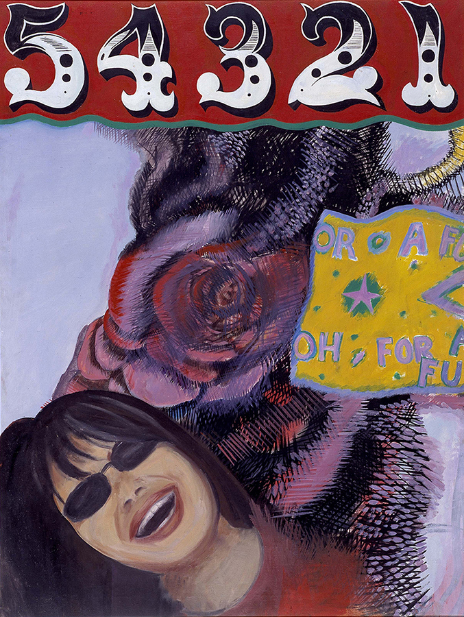 Despite understandable confusion to the contrary, Pauline Boty and Manfred Mann’s works “5-4-3-2-1” are almost certainly unconnected, even though her painting shares the same title as the theme tune to “Ready Steady Go!”, its seemingly “Cathy McGowanesque” figure and her having danced with Derek Boshier at the recording of the programme on numerous occasions!