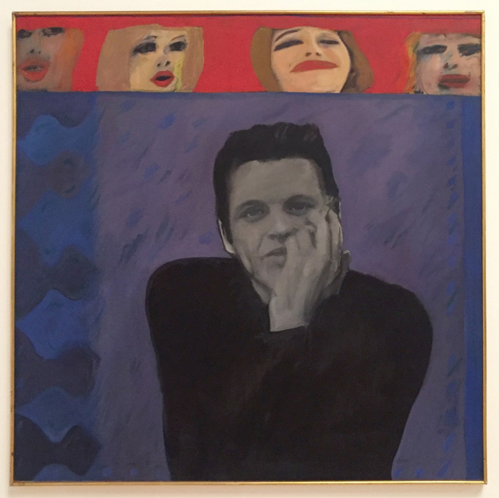 Pauline Boty, “Portrait of Derek Marlowe with Unknown Ladies”, oil on canvas, 1963