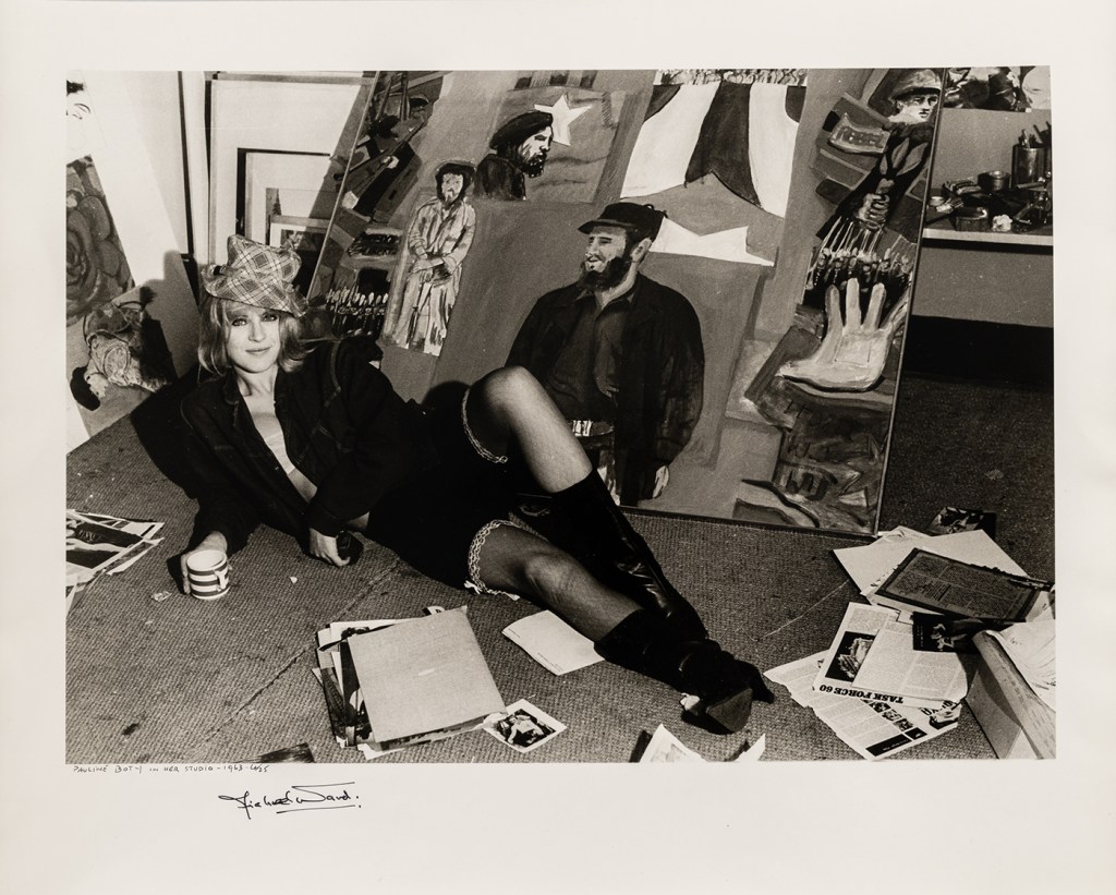 “Untitled (Pauline Boty In Her Studio with ‘July 26’), 1963” by Michael Ward. Vintage photographic print. Ed. 4/25. Courtesy of Elizabeth Seal-Ward for the Michael Ward Archive & Gazelli Art House