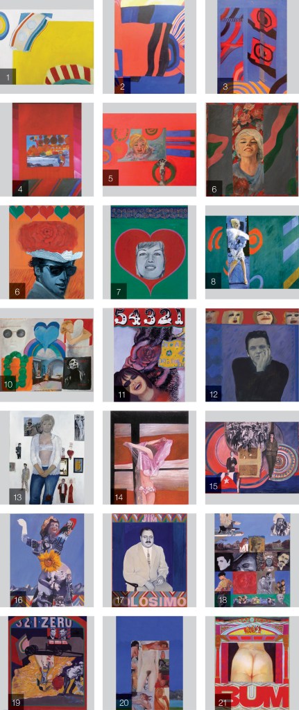 The key above showing the different individuals and objects assembled by Pauline Boty for one of her most important works, her 1964 painting “It’s a Man’s Word I”, has now been added to the site. Among the figures newly-identified are the 4th century BC Greek statue of Hermes and also Thelonius Monk as a likely contender for another of those represented. As stated on the page, it is greatly hoped that in time the sources of all the items chosen by Boty to make up the work will be identified and the list on this page completed. All comments, corrections, clarifications and suggestions on this item would be greatly appreciated, via the Contact form here: [link] The new page can be accessed here: [link]